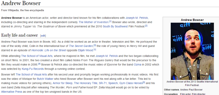 Anways… this Andrew Bowser guy, it turns out, really is an actor. I looked him up on IMDb.com: