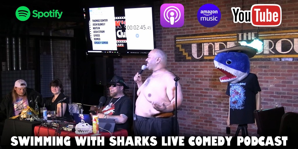 Comedians get thrown to the SHARKS! Talented and experienced comedians share the stage with first-timers and open-mic’ers in this late-night talk show-meets-podcast setting.