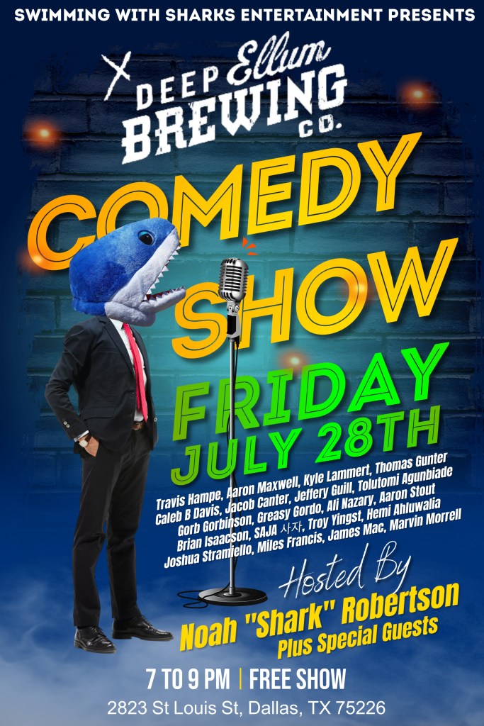 FRIDAY, July 28th = Deep Ellum Brewing Company Comedy Showcase from 7PM TO 9PM (Free Show)!