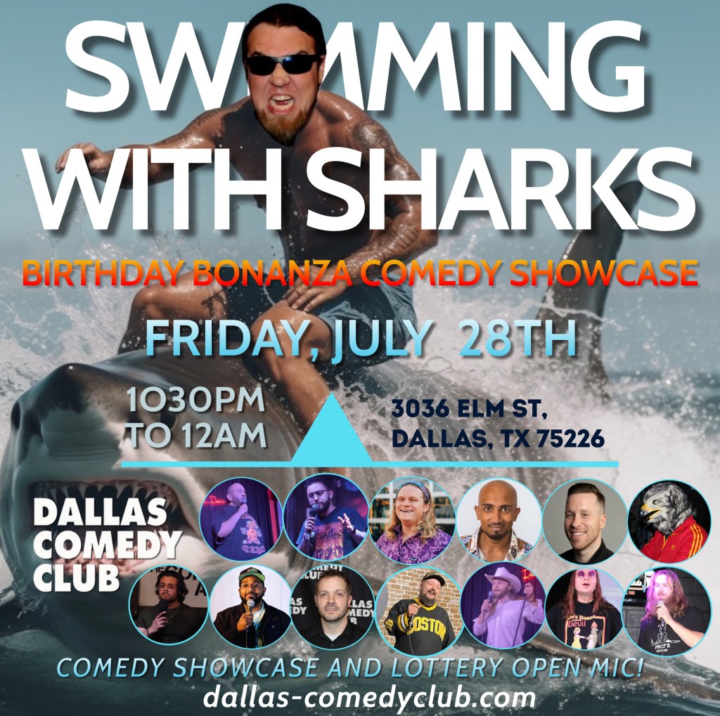 FRIDAY, July 28th = Shark’s Birthday Show at Dallas Comedy Club at 1030PM! Tickets Available!